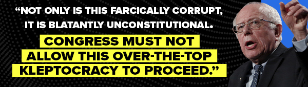 Not only is this farcically corrupt, it is blatantly unconstitutional. Congress must not allow this over-the-top kleptocracy to proceed. - Bernie Sanders