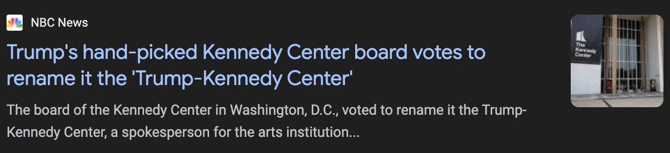 NBC News: Trump's handpicked Kennedy Center board votes to rename it the 'Trump-Kennedy Center' (12.18.2025)
