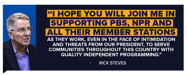 | Rick Steves is RALLYING everyone to defend PBS and NPR >>  Now Donald Trump regrets EVERYTHING. Donations to our campaign to elect a wave of Democrats who will SAVE PBS are SOARING! We are just INCHES AWAY from our Midnight goal! We just need [12] more donations from 90291 before Midnight so we can send Republicans back to the minority, RUIN Trump’s presidency, and restore PBS and NPR! Our donors just activated a 400%-MATCH, so even $5 would be HUGE! Jason, PBS and NPR may never get public funds again if we can’t flip the House blue… but luckily Democrats have a REAL SHOT at taking back the House. Here are the facts: | ✅ Republicans have the smallest House Majority in nearly a century. ✅ Donald Trump’s approval rating is UNDERWATER. ❗ Reclaiming the House is Democrats’ last line of defense against Trump’s presidency, so ignoring this opportunity is NOT. AN. OPTION. | We have a golden opportunity to flip the House, stop Donald Trump from wreaking havoc on our country, and restore FULL funding to PBS. But we’ll never be able to forgive ourselves if we let this opportunity slip through our fingers just because we couldn’t raise enough money… We have just 24 hours to reach our critical Midnight goal. Please, give $5 while the 400%-MATCH is active to end Trump’s reign of terror, restore NPR and PBS, and flip the House BLUE! Progressive Turnout Project |