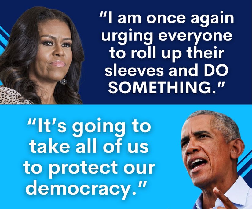 Michelle Obama: I am once again urging everyone to roll up their sleeves and DO SOMETHING! Barack Obama: It's going to take all of usto protect our democracy.