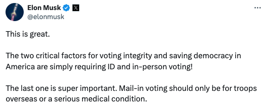 | Jason: Elon Musk is RALLYING Republicans behind Trump's TERRIFYING plan to completely BAN vote‑by‑mail → Vote-by-Mail is one of the most popular voting methods for Democrats. We cannot let Trump eliminate Vote‑By‑Mail to silence Democrats and rig the midterms! So starting now, we're turbo-charging our campaign to boost Democratic voter turnout, block Trump's attempt to rig this year's election, and flip the House blue. Can you give $5 or anything to Progressive Turnout Project now so we can hit our $100,000 goal? → Jason, Democrats have a REAL SHOT at taking back the House in November, but Republicans want to ban mail-in-voting to prevent Democrats from winning. Here are the facts: - Republicans have one of the smallest House majorities in HISTORY.